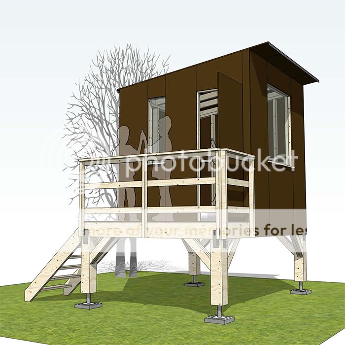 Nous voulons construire une cabane pour enfant (6 et 11 ans), qui pourrait servir de couchage le soir (futon à déplier). La structure est en douglas, le sol intérieur en OSB3 16 mm, le contreventement / habillage extérieur est en contreplaqué type coffrage.