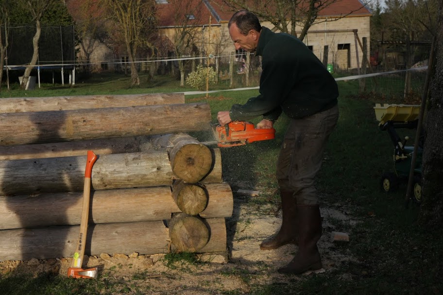 Ensuite il y a eu de longues heures d'écorçage, au début ça amuse tout le monde petits et grands et ensuite on se retrouve bien seul mais ça sent bon la résine et le contact du bois c'est toujours aussi génial.
