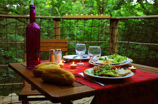 Prestations sur place : paniers gourmets, dîners perchés, randos.