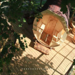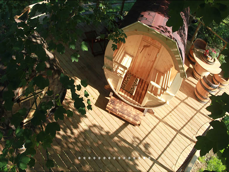 10 m, 16m et 22m, la plus haute chambre d’hôte branchée d’Europe! 4 cabanes perchées, un tonneau avec sa terrasse sur des pilotis et un lodge baroudeur isolé. Ces hébergements sont situés sur une île entourée d’un parc animalier de 56 ha et vous serez accueillis dans la cave où vous pourrez goûter les produits biologiques, calvados et cidres…Possibilité de commander votre dîner dans la cabane! Prestation ” cabane d’hôtes”