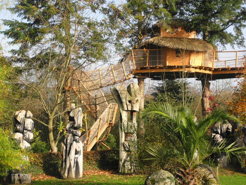 Les cabanes du jardin de pierre. Art et insolites dans un lieu magique. Elles vous accueillent toute l’année (à 7 mètres en toute sécurité). au cœur d’un éden de jardins, cours d’eau et œuvres d’art minérales. Prolongez le plaisir d’être coupés du monde, en profitant des paniers “Apéro” et Diner”, au chaud ou en terrasse. Prestation ” cabane d’hôtes”