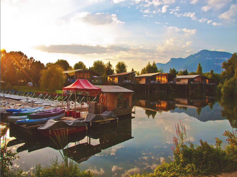 Le Domaine des Iles de Chanaz vous invite à vivre une expérience unique dans ses hébergements insolites au bord de l’eau : chalets, roulottes, tentes, bateaux ou logements sur pilotis, pour un séjour nature alliant confort et dépaysement.